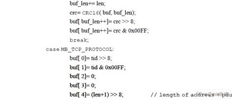 由上可知,modbus tcp 与modbus rtu 的协议转换的核心即为数据帧的解封装与封装。 Modbus 最初在串行链路上的实现(最大RS485ADU=256 字节)限制了Modbus PDU 的长度。 因此,对串行链路通信来说,Modbus PDU=256-服务器地址(1 字节)-CRC(2 字节)=253字节。从而:RS232 / RS485 ADU = 253 字节+服务器地址(1 字节) + CRC (2 字节)= 256 字节。 TCP Modbus ADU = 253 字节+ MBAP (7 字节) = 260 字节。如图3 所示为modbus RTU 为 master 时的软件流程图,部分代码摘录如下: