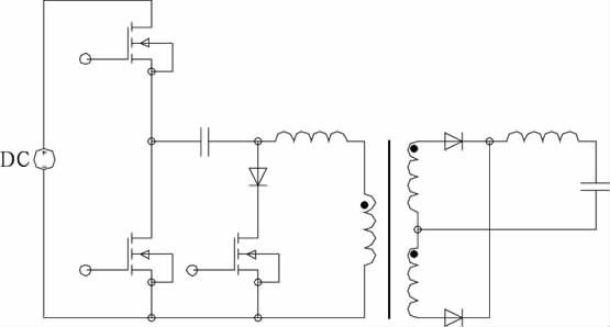 文献[7]提出不对称脉冲PWM 控制,其下管下降沿与上管的前沿互补,上管可实现ZVS.只要设计的占空比较小,无需其它措施即使工作在较高频率下开关损耗也很小。变压器直流偏磁,除占空比端点外,偏磁电流小于不对称半桥。宽范围适用性优于传统的不对称半桥。低压大电流的应用场合有一定的优势。