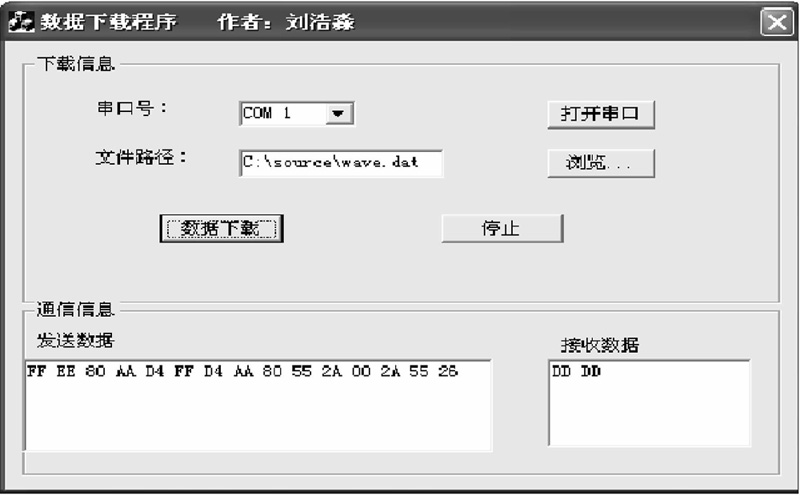 本文采用和校验的结构,一个数据包包含15 Byte.其中第1个字节是数据包头即握手字符。第2字节为控制字符,EE代表写命令,DD代表读命令。第3至第14为可利用数据。第15字节作为校验字符,理论上应等于这个数据包中数据字符串之和的后8bit.
