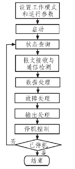 工作控制模块包括系统初始化和运行控制两部分。系统初始化通过读取功率模块的额定参数、统计功率模块数、计算系统总额定电流,以确定并联系统的初始配置。运行控制按照用户指定方式,实时监控功率模块并联运行,监控流程如图5所示。首先向功率模块设置稳压或稳流工作模式以及电压或电流参数,然后发送启动命令,使功率模块开始工作。状态查询以广播方式发送查询命令,以查询各功率模块的运行状态和参数。报文接收接收功率模块发送的查询响应报文,并从报文中获得数据;通信检测根据是否有响应报文判断通信是否正常。数据处理根据报文接收中获得的数据计算总电流、电压、平均电流(稳压模式)、安培时(安培时模式)等系统运行参数。故障处理检测功率模块和系统故障,进行故障处理和报警。输出处理根据当前的运行状态输出控制参数,包括软启动输出、在稳压模式下输出平均电流、安培时模式下输出加药信号、工艺曲线模式下输出下一阶段的电压或电流参数等。停机控制在需要停机时通过发送停机命令控制功率模块停止工作。