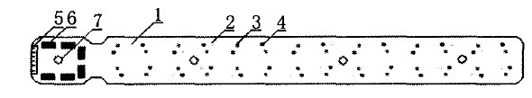 图1 LED灯条(1.电路板:2.绿色LED;3.红色LED;4.蓝色LED;5.连接器;6.电路芯片;7.安装孔)
