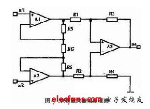 如果A1和A2使用的是相同的运算放大器,则它们的共模输出电压和漂移电压相等,加到A3差放后,将被相互抵消,因而整个电路具有很强的共模抑制能力,很小的输入失调电压和较高的差模电压增益。
