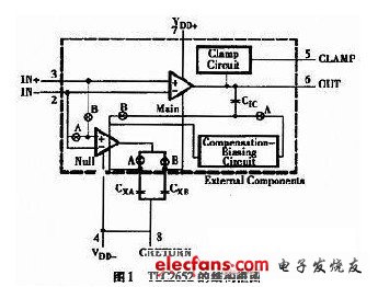 (2)校零放大器(Null):它也有三个输入端,但与主放大器相反,在芯片内部的输入端是反相输入端。