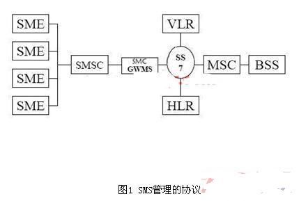SMS 是一种存储和转发服务。也就是说,短消息并不是直接从发送人发送到接收人,而始终通过 SMS 中心进行转发。如果接收人处于未连接状态(可能电话已关闭),则消息将在接收人再次连接时发送。短信息应用于内部管理,业务系统和客户服务系统: A公司在全国已有100多个业务划分区域,日常工作中有大量诸如新商品信息、价格调整等业务资讯需要及时提供给所有区域经理,在应用短信息之前,主要通过电话或Email来完成这些事情,需要投入大量的人力来完成这些工作,并且还经常由于各种因素的影响而出现延误的现象,现在用短信息则可以快捷和轻松地完成这部分工作。涉及SMS管理的协议如图1所示。