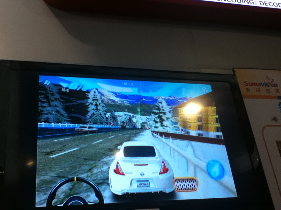 这个哥们玩的很happy,互摸电视玩游戏,今年很多电视都能触摸了,去年还没这么普遍好像