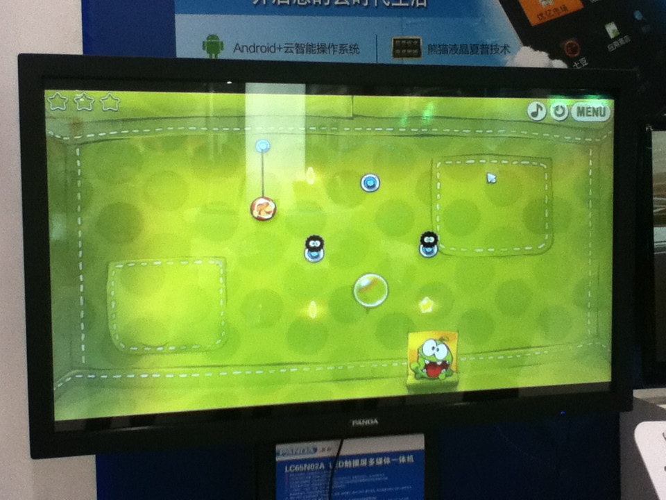 这可是咱国产的中国电子熊猫牌啊!N就不见,这次扬眉吐气了,这也是个可触摸的大电视,看看我也来玩玩