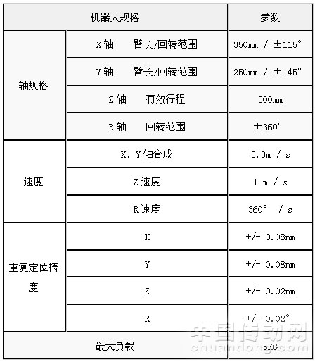 SCARA机器人采用的是众为兴公司自主研发的SCARA机器人,该款机器人具有性能稳定,高速、高精的特点,在国内多个客户现场得到验证。