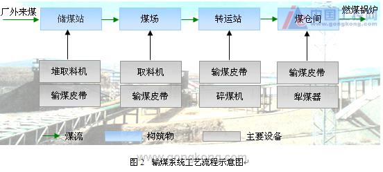 不同的电厂由于其机组的大小,厂外来煤方式、煤场到原煤仓距离的远近和输煤设备等方面的不同,在输煤系统工艺形式上也存在着较大差异。但按照工艺段和功能一般都包括卸煤流程、堆煤流程、上煤流程和配煤流程几个部分。