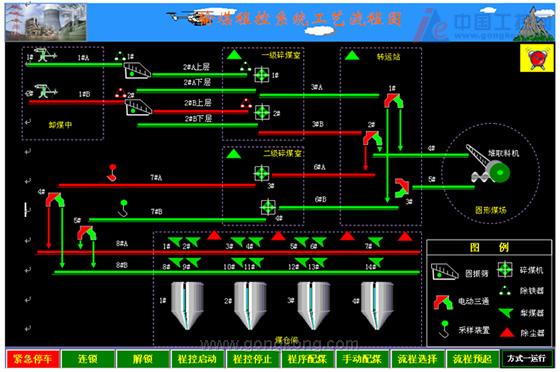 3) 流程停止:停止指令下达后,系统主设备按顺煤流方向延时顺序停止;