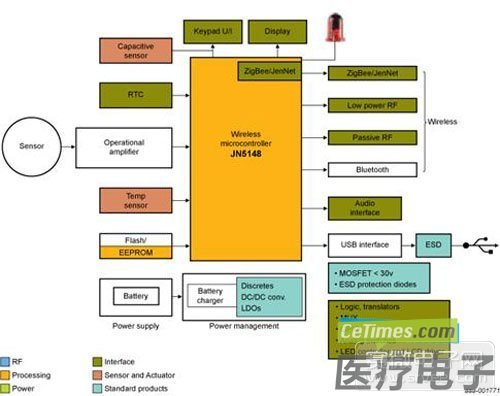 图7。采用JN5148手持医疗保健设备框图