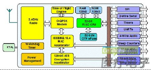 NXP 公司的JN5148-001是超低功耗高性能无线微控制器(MCU),具有32位RISC处理器特性,还集成了2.4GHz IEEE802.15.4兼容的收发器,128KB ROM,128KB RAM和各种丰富的模拟与数字外设,可以运行JenNet和ZigBee PRO。收发器的数据速率500和667kbps,工作电压2.0V-3.6V,MCU的时钟速率4- 32MHz。主要用在机器人和安全低功耗无线应用,JenNet和ZigBee PRO网络,智能计量,家庭和商业建筑物自动化,工业系统,遥控,手持医疗保健设备,玩具和游戏外设等。本文介绍了JN5148-001主要特性和优势,功能框图,无线电框图,调制解调器框图和基带处理器框图,参考模块电路图和材料清单以及采用JN5148的手持医疗保健设备框图。