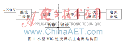 传统小型MIG逆变焊机的主电路结构如图1所示。前级采用单相不控整流加滤波电容。