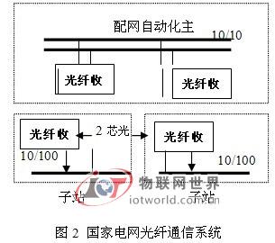 国家电网通信系统的主站和子站之间的通信,通过使用光纤收发器直接利用光纤进行通信,该通信方式具有较大优点,主要是10M/100M的网络数据不必通过转换(或压缩),通信速率较高,另外通过这种方式连接各个子站就象在一个局域网上一样,相互之间的访问更快捷便利,该通信方式使用通信光缆中的一对光芯。其结构如图2所示。