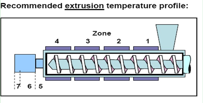 螺杆:推荐采用螺杆长径比:≥25:1;压缩比:2.5:1~3.0:1,为得到良好的熔融塑化效果,建议使用45mm以上挤塑机。
