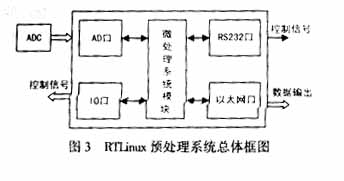 采用RTLinux的预处理系统还需要编写设备驱动程序。按照在Linux下编写驱动程序的规则编写,编写以下驱动程序:(1)对设备初始化和释放;(2)把数据从内核传到硬件和从硬件读取数据;(3)读取应用程序传递给设备文件的数据和回送应用程序请求的数据;(4)检测和处理设备出现的错误。