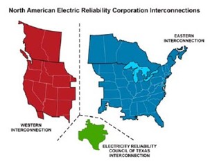 北美的电力电网覆盖美国和加拿大。系统顶部是三个独立的同步电网,如右图所示:东部电网分布图、西部电网分布图、德州电力可靠性委员会(ERCOT)电网分布图。而对于美国,这些电网是在联邦能源监管委员会(FERC)的管控下运行的。