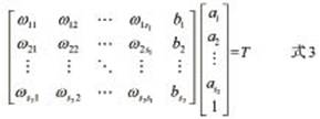 为输出层第i个神经元与隐层第j个神经元的连接权值;bi为输出层第i个神经元的偏置值;aj为隐层第j个神经元的输出向量;T为理想输出矩阵。求解式3,即可得到输出层与隐层的连接权值。