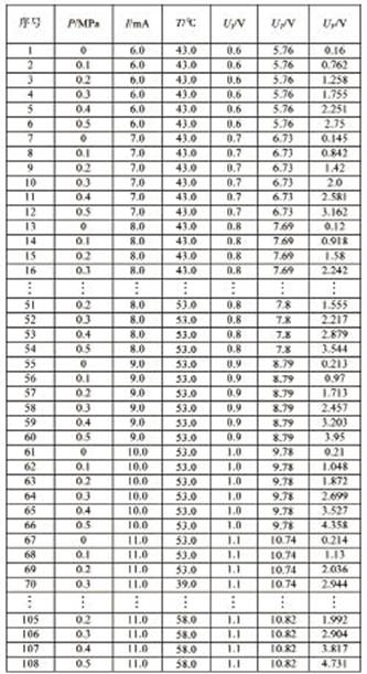注:UI为电流传感器输出电压,UT为温度传感器输出电压,UP为压力传感器输出电压,表4同。