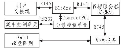 在单机架系统中,用户交换机与Blade通过RJ45的千兆网接口进行连接,用户经用户交换机接入Blade服务器进行数据交换,可以在全球任何地方,由Intemet接入到用户交换机。集中控制单元具有网络端口等PC常用输出端口;分散控制单元(DMU)通过CompactPCI与Blade进行通信;通过232串口与集中控制中心(SMU)进行通信。DMU和SMU共同完成KVM的切换和采集Blade状态功能。