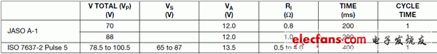 美国的ISO-7637-2 Pulse 5和日本的JASO A-1针对14V动力总成的仿真条件如下表。