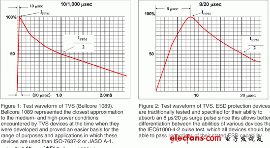图1:TVS的测试波形(Bellcore 1089) 图2:TVS的波形