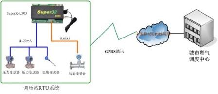 经过多方比较最终用户选择了我们的Super32-L303RTU作为调压站控制RTU,它集成有8AI、4DI、4DO,一个RS232/485接口,一个GPRS通讯接口,可以满足用调压站数据采集、调度中心通讯、仪表通讯的需求。对于数据采集功能用户无需编程。RTU内置GPRS通讯模块,用户无需单独采购GPRS模块,也无需对GPRS通讯进行相应的编程。