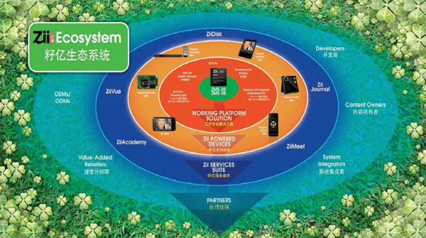会议期间,沈望傅先生和籽亿的工程师们向大家展示了基于ZMS-05/08的芯片、平台、开发及服务套件。目前,ZMS-05和ZMS-08是籽亿生态系统的两款核心芯片。ZMS-05处理器将媒体处理阵列、ARM926-EJS 双核及外围设备控制器与硬件平台、高级 SDK 和中间件完美结合,是旨在开启模仿山寨机模式的OEM市场。ZMS-08将ZiiLABS干细胞计算阵列灵活的多格式媒体处理能力与ARM Cortex处理器结合在一起,提供了下一代网络上设备所要求的低功耗、高性能的富媒体处理能力,这些设备包括网络本、上网本、互联网电视、视频会议和家庭媒体中心。此外,ZiiLABS发布了针对Android和Plaszma操作系统的下一代智能/媒体电话平台----TRINITY和下一代7M协作式会议系统ZiiMeet。