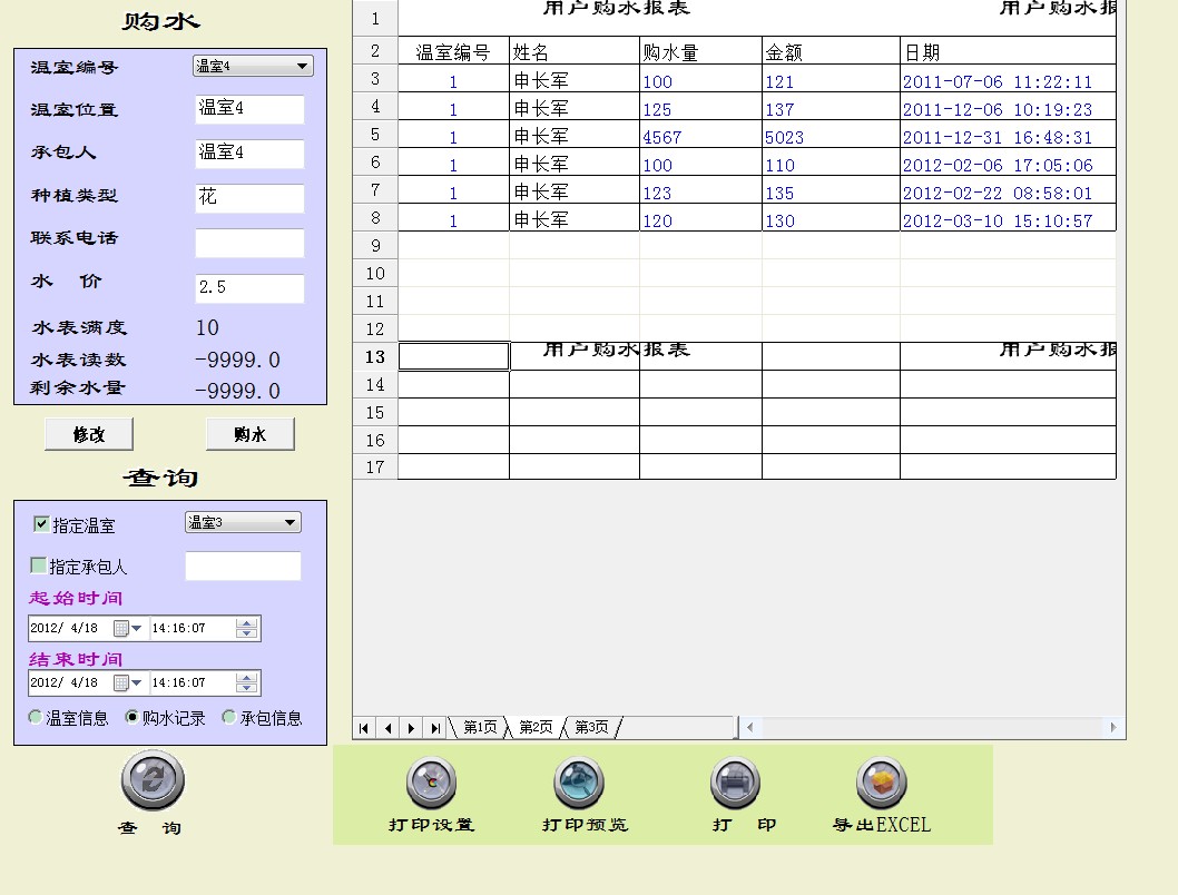 系统可对水泵喷淋设备的启停进行控制管理,同时还可根据各个大棚的用水量设定购水限价,实现水价梯度管理。从技术角度实现节水效果的同时通过水价的监管提高用户节水的意识。