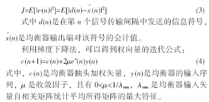 利用自适应均衡器补偿未知时变信道的特性,需要采用有效的算法跟踪信道特性变化来更新均衡器的加权系数。而适合自适应均衡器的算法有多种,下面就LMS 算法和RLS 算法的原理加以介绍。