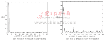 摘 要:介绍了自适应均衡器下的LMS和RLS算法的基本原理,并分析了2种算法中的忘却因子μ对LMS和RLS算法收敛性能的影响。通过仿真可知,在相同忘却因子下,RLS算法的收敛速度明显快于LMS算法,并且误差也比LMS算法小。
