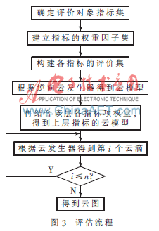 基于云模型的系统效能评估方法,就是选取系统中的关键性指标,再将定性指标用正态云表述出来,根据系统指标分层结构,在不确定的情况下较为客观地对系统进行综合效能评估。该方法有3个关键因素:指标集U、权重因子集W和评价集V,其中W和V的元素是隶属云,并不全是精确值。