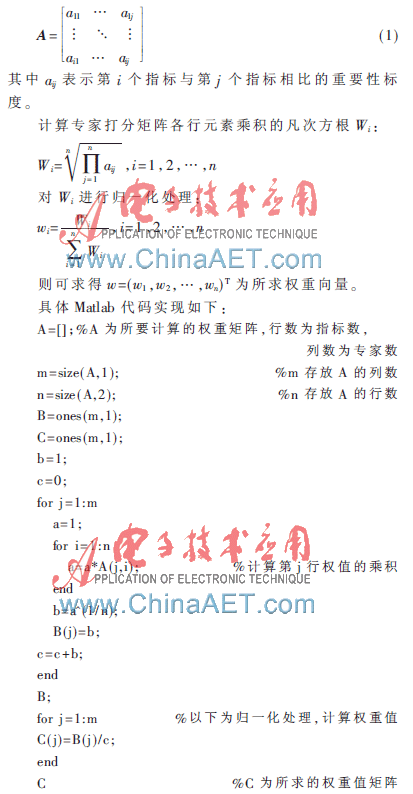 例如,可以参照标度值对指标集中两两指标间的相对重要性进行打分,并得到专家打分矩阵: