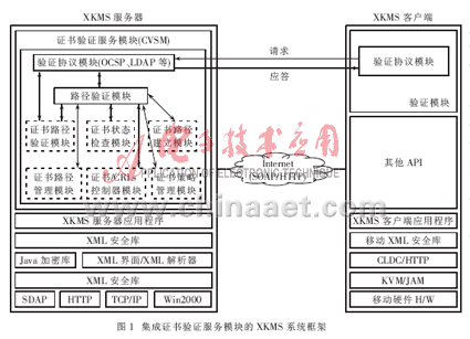 关键词: 公钥基础设施 证书验证 XML密钥管理规范(XKMS) 在线证书状态协议