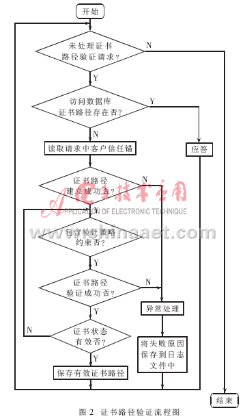 证书路径的建立在验证过程中完成。服务器调用CPCM按照严格的信任层次建立以客户的信任锚为起点的证书路径。