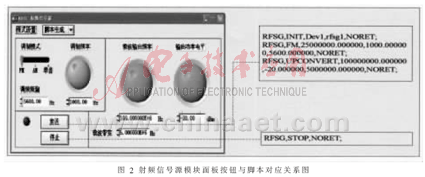 射频信号源的软面板仪器操作与脚本之间对应的关系如图2所示。