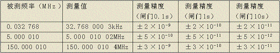 对本测频系统进行了大量统计性试验。选用西安电子科技大学信息处理研究所提供的高稳定度铷原子钟作为本系统的标频来测量Agilent 8662频率合成器的合成频率,测量结果如表1所示。