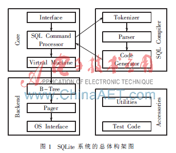 图1给出了SQLite的主要模块及相互之间的关系,以下将分别介绍各个部分的功能。