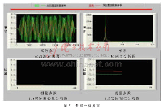 数据采集卡通过整周期采样所获得的数据已经包含了振动信号的幅值、相位及平衡转速信息。由采集卡获得的数据通过PCI总线上传至PC机,由上位机的LabVIEW程序做进一步的分析、处理和解算,从而得到有关转子的不平衡量的大小、相位以及转速等信息并进行显示。