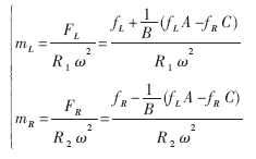 式中,FL、FR为不平衡质量产生的离心力;R1、R2为不平衡质量的校正半径;ω为转子转速;fL、fR为两支轴承上承受的动压力;A、C为左、右校正平面至左、右支承轴承间的距离;B为左、右校正平面之间的距离。