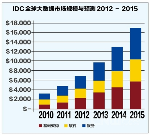 【表】IDC全球大数据市场规模与预测 2012~2015