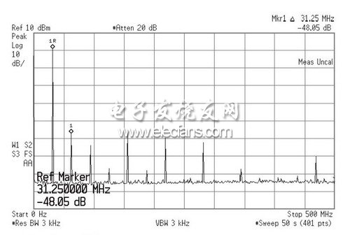 图4所示为利用该系统得到的该信号的频谱特性。