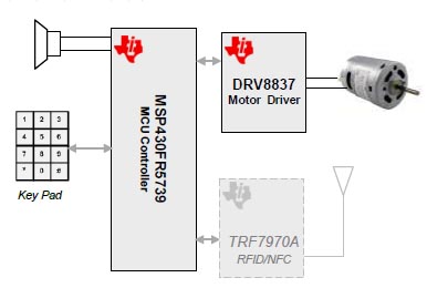 图4 电子门锁系统架构图(MSP430FR5739 + DRV8837)