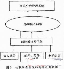 感知接入网络:主要通过构建具有感知和计算能力的网络,将阅读器识别的信息传送给医院后台管理系统。