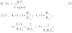 第二部分为高通滤波器,系统要求的高通截止频率为fc,其传递函数如下: