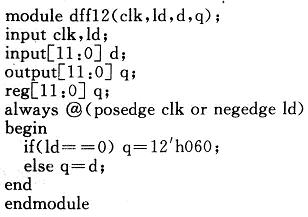 三位BCD码加法器输出的结果通过缓冲器以后,反馈到输入端重新作为一个加数,在1km脉冲信号的作用下,每来一个脉冲就和单价相加,形成连续累加的功能。缓冲器还有一个控制输入端LD,LD=O时,在1km脉冲的作用下,输出起步价6元;LD=1时,在1km脉冲的作用下,输出和输入相等。缓冲器的Verilog HDL源程序如下: