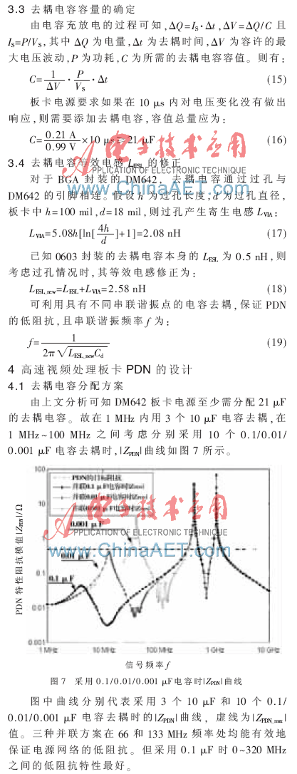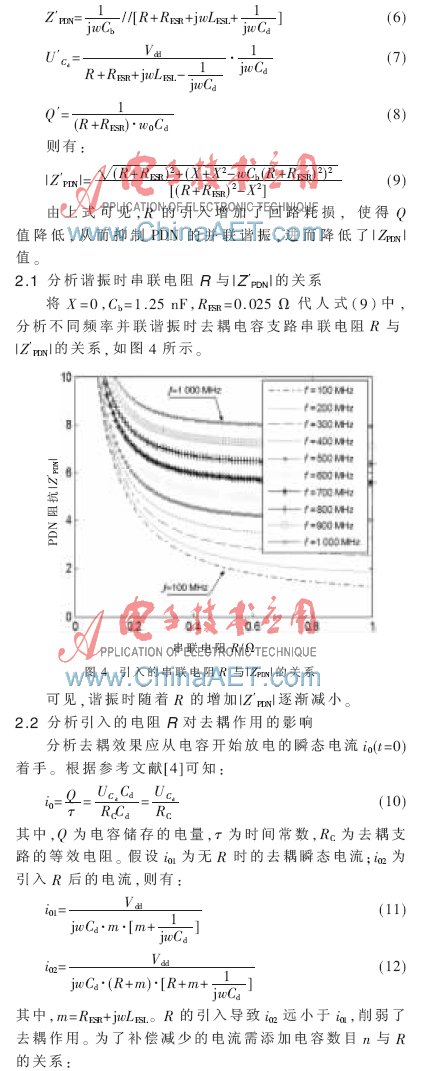 本文提出了一种抑制电源分配网络并联谐振的方法。该方法通过在去耦电容支路中引入一个串联电阻来增加支路损耗,从而达到抑制并联谐振的目的。