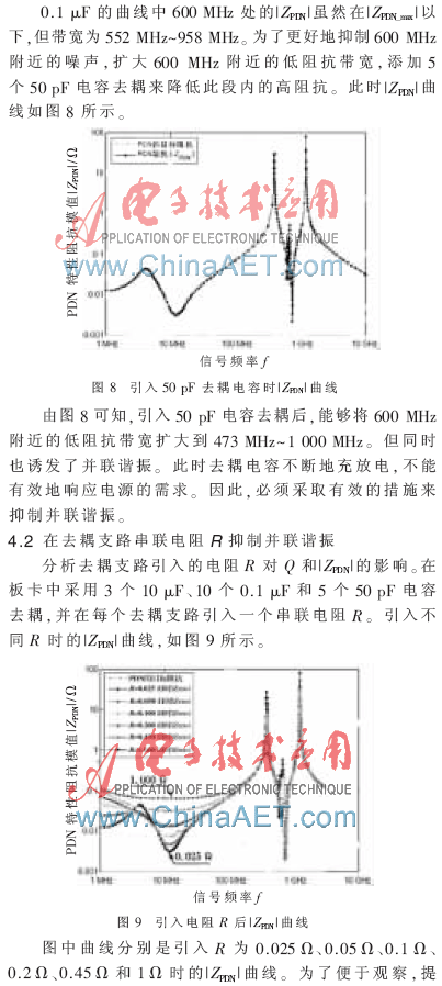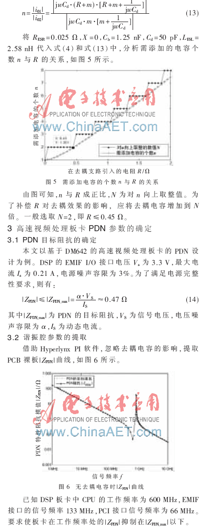 本文提出了一种在去耦支路引入串联电阻来抑制PDN并联谐振的方法,并借助Hyperlynx PI软件将其应用到实际板卡中。仿真结果表明,在去耦支路引入的电阻能够有效地减少电容在高频引起的并联谐振。