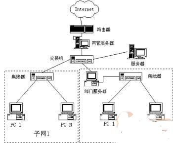 对于比较大型的应用,除了网管服务器外,应该采用专门的服务器进行数据库管理、文件管理,同时作为网络管理主机,进行权限设定、子网划分等,也可以将MIS、ERP、网页等系统存到服务器上,这样做的最大优点在于可以方便地进行管理和维护。