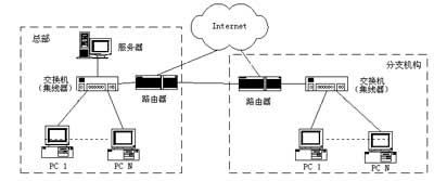 如果分支结构与总部在一个城市,则可以采用ISDN或Modem,甚至DDN;如果分布在两个城市,则分支机构可与总部通过VPN(虚拟专网)进行连接,这样可以节省许多费用,也能保证数据安全。
