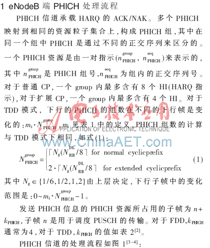 把每一组处理完成的HI信息进行叠加,构成3个资源粒子组,进行资源映射。首先确定PHICH所占用的符号数为k,第一个OFDM符号的所有资源粒子组的个数为2×N_DL_RB-4,其中减去的4个为PCFICH所占用,在第一个OFDM符号中,每一个资源块中有4个资源粒子被参考符号占用,所以每个资源块中可用的资源粒子组只有2个,所以总组数2×N_DL_RB-4。其余的OFDM符号的个数均为3×N_DL_RB。设N1=zeros(1,2×N_DL_RB),N11=0;N2=zeros(1,3×N_DL_RB),N22=0直到Nk=zeros(1,3N_DL_RB),Nkk=0。其中Nk表示保存用于被PHICH所占用的第k个OFDM符号的REG的编号,Nkk表示被PHICH所占用的第k个OFDM符号的个数。由式(5)分别计算出每一组的3个资源粒子组所在的OFDM符号l′的位置,再由式(6)或式(7)计算在该符号上的资源粒子组的位置ni,以及在该符号上的资源粒子组的个数,分别保存在用于存储该符号的相关寄存器Nli'li'和Nli'中,直至所有的组全部映射完成。